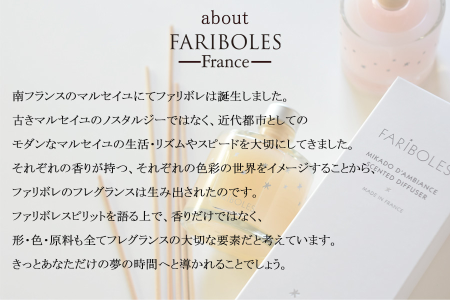 あなたらしさを演出する香り、デザイン。 香りの本場、南フランスのマルセイユで生まれたファリボレは、